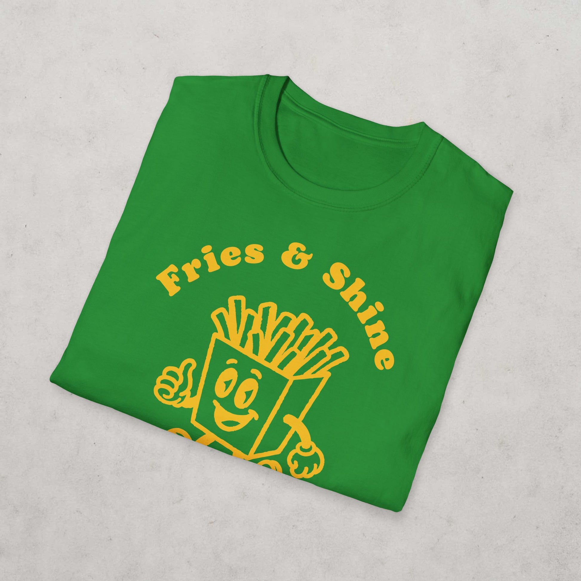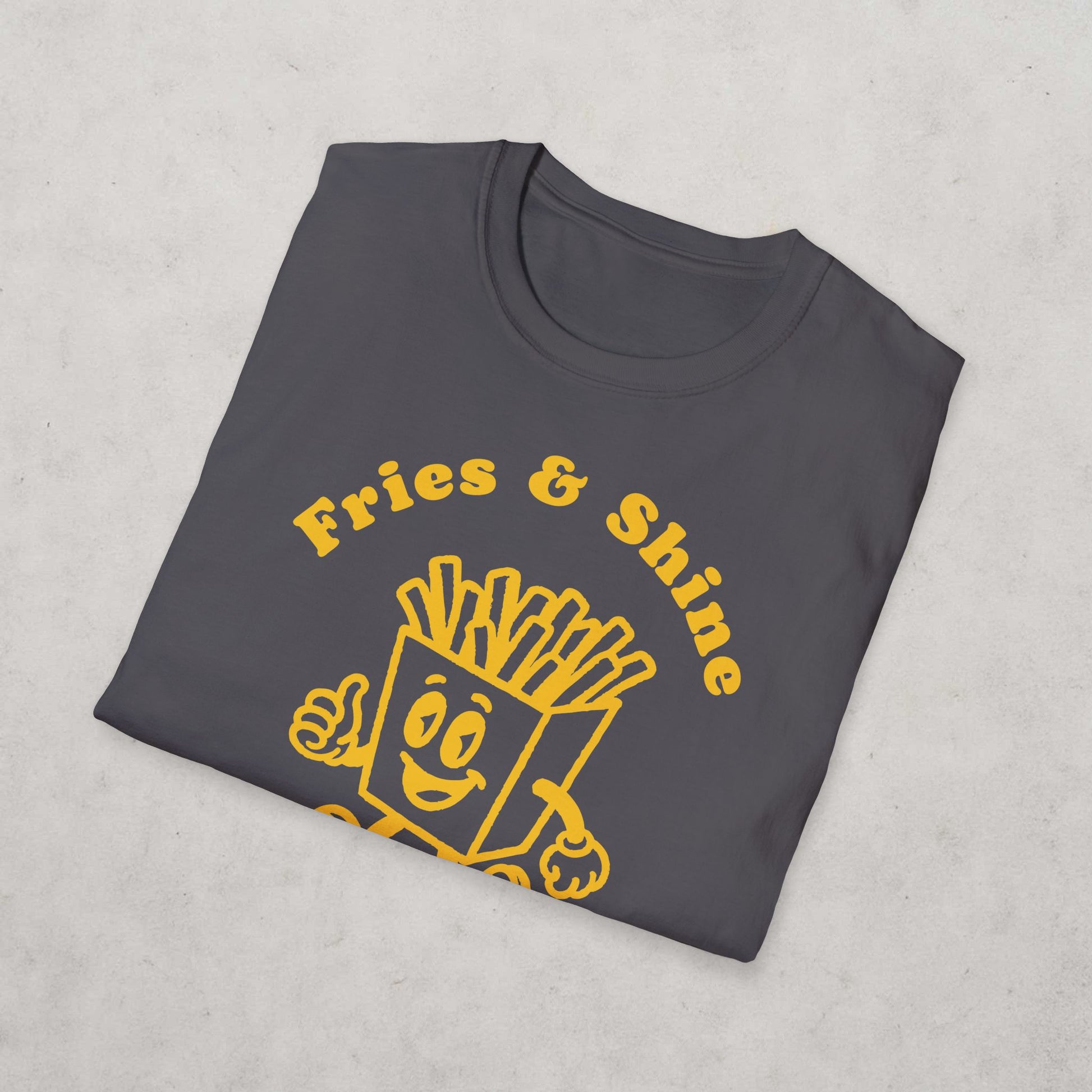 We’re excited to introduce this cool, cartoon style French Fries Design Unisex T-Shirt, featuring ’Fries & Shine’. Made from soft, ring-spun cotton, with comfortable and breathable fabric, our traditional T-Shirt fit, a classic crew neckline and great graphic style; it’s the perfect addition to any wardrobe. Whether you dress your T-Shirt up with smart jeans, shorts or skirts - or whether you prefer to T-Shirt in casual style, gym gear or pyjamas; this is an inspired present for someone else or an excellent way to treat yourself. Perfect for the summer, but equally good all year round, it’s an ideal gift for friends or family, for celebrations or birthdays - and adds a fun, cheerful and on trend vibe to any look or outfit.