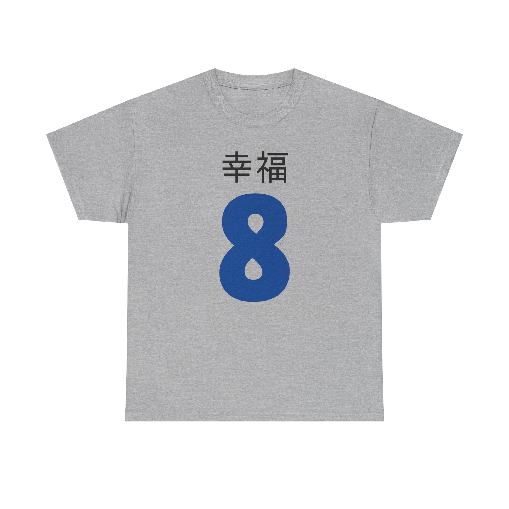 Introducing our stylish 'Happiness 8' Graphic Unisex Jersey Short Sleeve T-Shirt in Blue and Black, perfect for anyone looking to blend comfort with a touch of Japan. The Japanese kanji translate to 'Happiness' and the number 8 signifies luck, prosperity, and growth, you really can't go wrong with this cool tee!